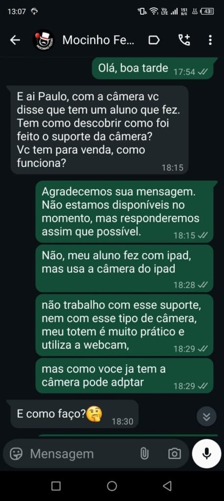 Fique tranquilo! Acompanho meus alunos até o fim do projeto diariamente.